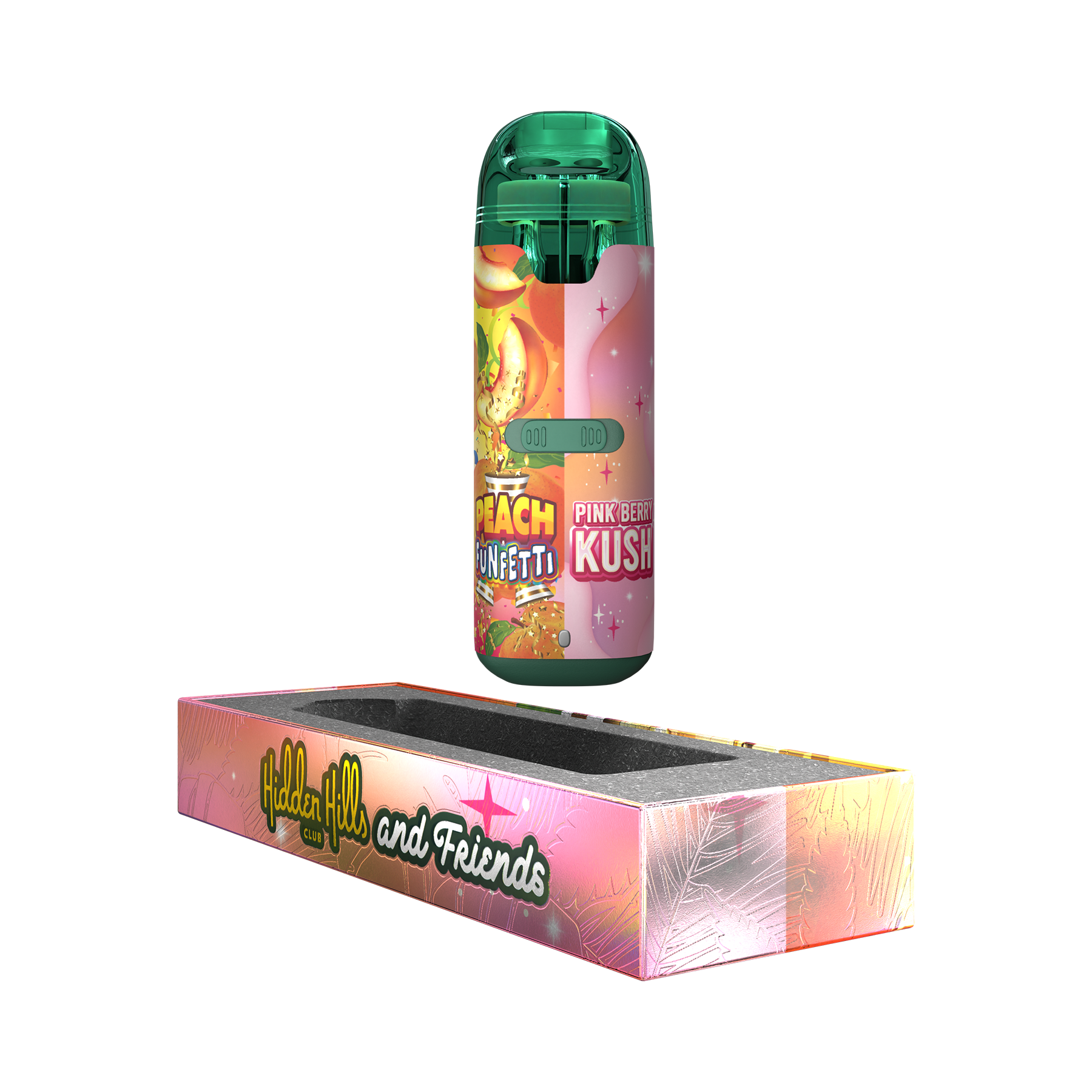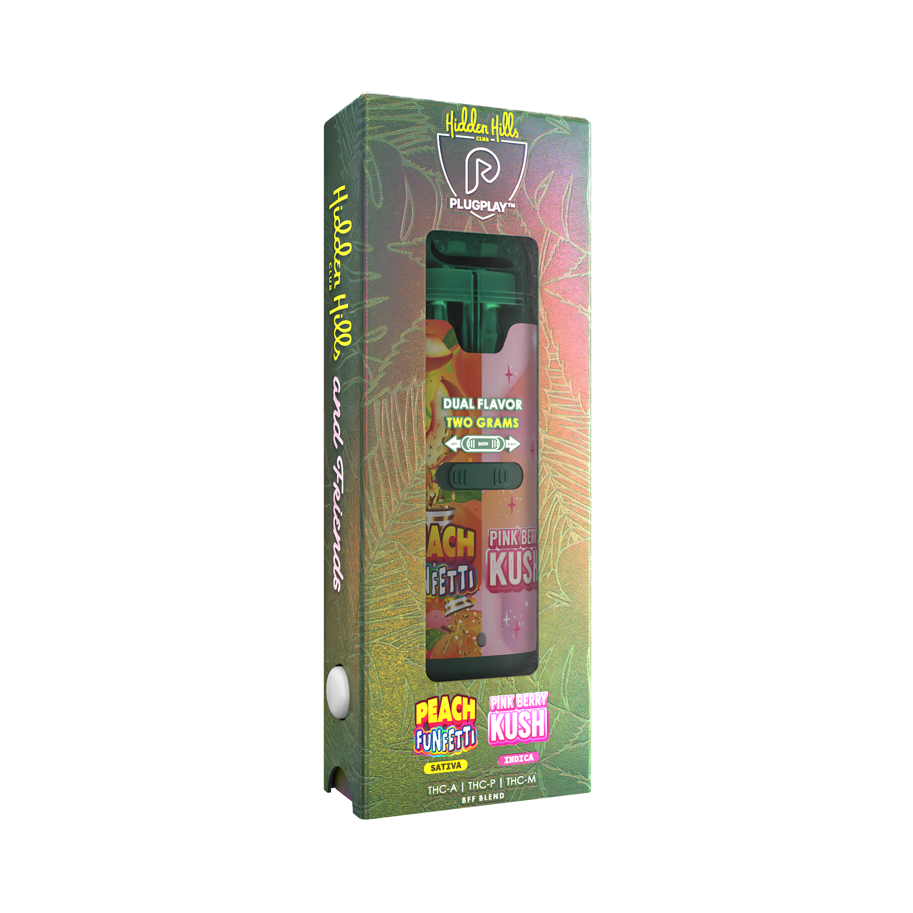 Discover the BFF Blend collection at Hidden Hills Club, offering a unique blend of potent cannabinoids for a top-tier vaping experience. Each 2-gram disposable in this line is crafted with THC-A, Delta 9, and THC-B, delivering strong effects and rich flavors. Explore the tangy sweetness of Sour Wowie (Sativa), a blend of sour apple and tropical fruit, or the berry-rich profile of Purpleberry Pie (Indica), perfect for relaxation. For hybrid lovers, try Razzleberry Kush, featuring a bold raspberry and kush flavor. With the BFF Blend collection, enjoy a premium, flavorful experience designed for true connoisseurs.